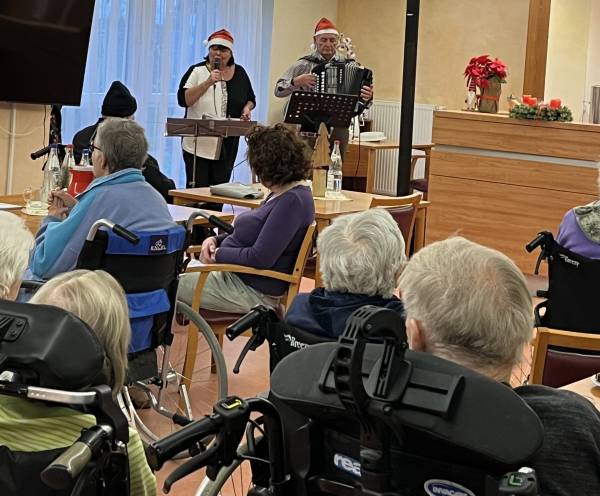 Sinsheim: Am Nikolaustag wurden die Bewohnenden des ASB Zentrums für Altenhilfe am Ilvesbach in Sinsheim von Familie Löffler besucht. Familie Löffler unterhielt die Bewohnenden mit besinnlicher Weihnachtsmusik inklusive Gesang und Akkordeon. Diese musikalische Nikolausfeier zauberte vielen Bewohnenden ein Lächeln ins Gesicht und es wurde kräftig mitgesungen und getanzt. Außerdem genossen alle die am Morgen gemeinsam gebackenen Plätzchen der Bewohnenden.
